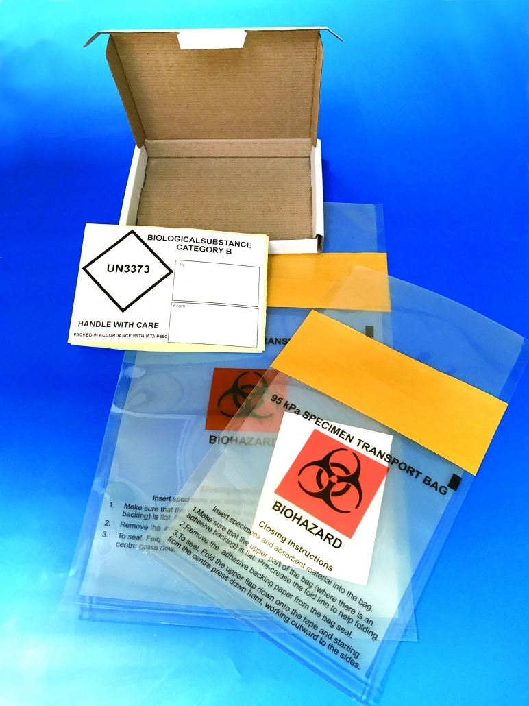 - Marked with the UN3373 diamond and the words ‘Diagnostic Substance Category B’.